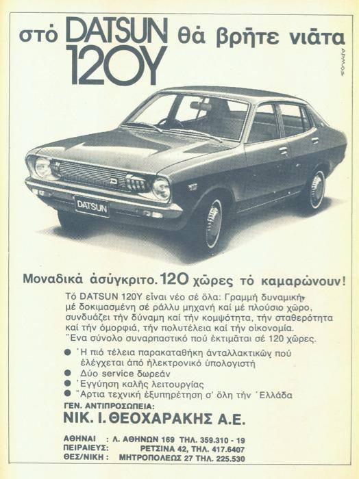 Αστα βραστά γίνανε πλέον οι δρόμοι... Μιά μέρα πήραμε το Datsun και βγήκαμε. Τετάρτη απόγευμα, κλειστά καταστήματα και δεν έβρισκα να παρκάρω!Αυτή ήτανε κάποτε η citroen. Μπροστά, μα πολύ μπροστά, δεκαετίες μπροστά από τις άλλες εταιρείες. Και σήμερα μια lux monkey-copy by peugeot. Άστο γιατί πονάει. Όσο για το 120Y το είχε κατακόκκινο, ένας της παρέας τότε και κάναμε τσάρκες. Γερό και τίμιο. Η Ν. Ζέρβα, η ΚΑ΄ Φεβρουαρίου ήτανε ακόμα οδοί 2πλής κυκλοφορίας, και έβρισκες ότι ώρα ήθελες να παρκάρεις μπροστά στο ¨Σκαραβαίο¨ ή στην ακαδημία.
