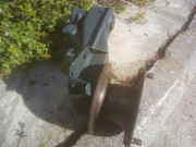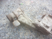 και μάλιστα σε ωραία κατάσταση απ'ότι είδα. Ούτε σκουριές ούτε τίποτα, και με το εργοστασιακό καφέ χρώμα. Από GSA του '85 ή '86, από τα τελευταία. Καλή φάση. Το πήρα λοιπόν και αφού το καθάρισα με τη συρματόβουρτσα, έβγαλα σωλήνα φρένου και δαγκάνα, καθάρισα και το μουαγιέ και το δισκόφρενο, ( το οποίο έχει ακόμα ψωμί, μια χαρά), και το πήγα στον λαμαρινά και του'βαλα μια ενίσχυση από κάτω, για το φόβο των Ιουδαίων, μη λάχει και ξανασπάσει. Ένα κομμάτι σιδερένια ράβδο, 30x8mm
