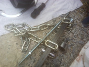 μια αλυσίδα, δυο μπουλόνια Μ10 με τα παξιμάδια τους, μια ράβδος τετράγωνη 20x20mm που την τρύπησα σε ένα σημείο τρύπα Φ10, και μια ντίζα Μ10x1.5 με ένα παξιμάδι. Περνάς την αλυσίδα πίσω από το μπράτσο, απ'την εσωτερική μεριά, βιδώνεις τη ντίζα στη βίδα της αντιστρεπτικής, (η οποία παρεμπιπτόντως είναι επίσης Μ10x1.5), αφού έχεις βάλει ΚΑΙ το παξιμάδι στη ντίζα, εφαρμόζεις την αλυσίδα πάνω στην τετράγωνη ράβδο ώστε να είναι σχετικά σφιχτά και να μην αφήνει πολύ μήκος ντίζας, γιατί η ντίζα είναι μαλακιά και στραβώνει, δεν αντέχει πολύ δύναμη σε πολύ μεγάλη απόσταση, και ξεβιδώνοντας σιγά σιγά, τραβάς προς τα έξω το μπράτσο, προσέχοντας όμως να μην σπρώξεις την αντιστρεπτική και βγει από την απέναντι μεριά. Βάζεις μια κόντρα από την απέναντι μεριά.