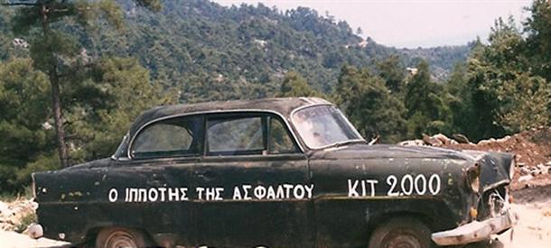 Ειναι συνηθισμενο στην επαρχια να χρησιμοποιουν παλια αυτοκινητα χωρις πινακιδες για αγροτικες δουλειες,για οσο διαστημα αντεχει η μηχανη τους.Και το συγκεκριμενο εχει υπερβολικα καλογραμμενη επιγραφη,και υπερβολικα καθαρα τζαμια για παρατημενο.Οποτε ισως τελικα να ηταν εν λειτουργια κατα την περιοδο της φωτογραφησης.Πιθανολογω δε οτι ο οδηγος του θα καμαρωνε μεταξυ αστειου και σοβαρου για την επιγραφη.