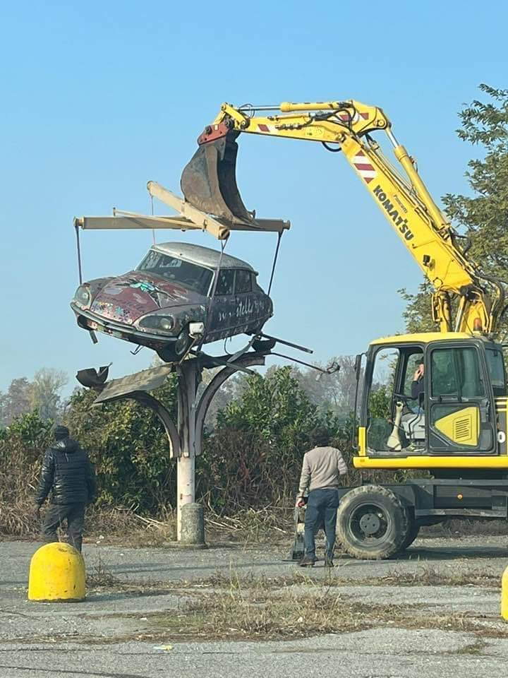Πάντως, με τον τρόπο που την κατέβασαν, δείχνει σεβασμό και ίσως αναπαλαίωση. Αλλιως, με το φτυάρι ήταν πανεύκολο το κατέβασμα, αντί των ιμάντων.